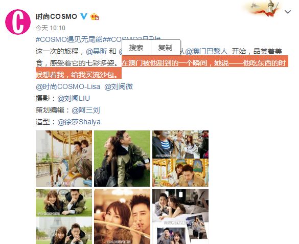 不信来看,这一组二月情人节特刊杂志大片↓由吴昕潘玮柏甜蜜出镜~