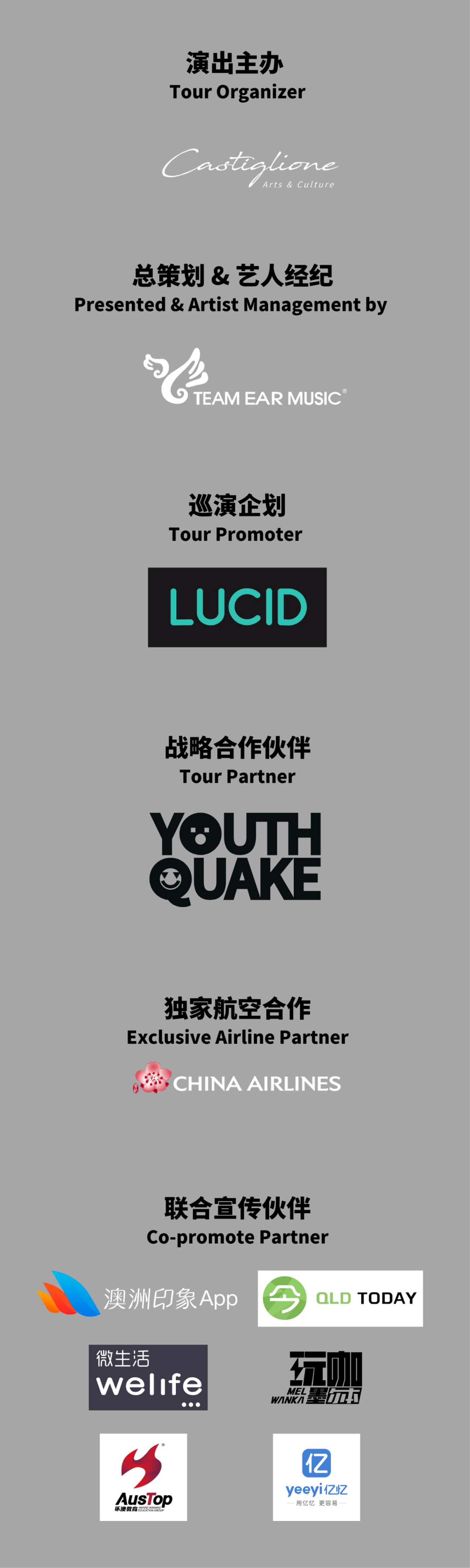 除了19年巡演时去过的墨尔本和悉尼,本次的巡演还增加了布里斯班的巡演场次,意在为更多的乐迷朋友带去积极的养分。以他快乐和温暖的音乐驱散忧郁的阴霾。