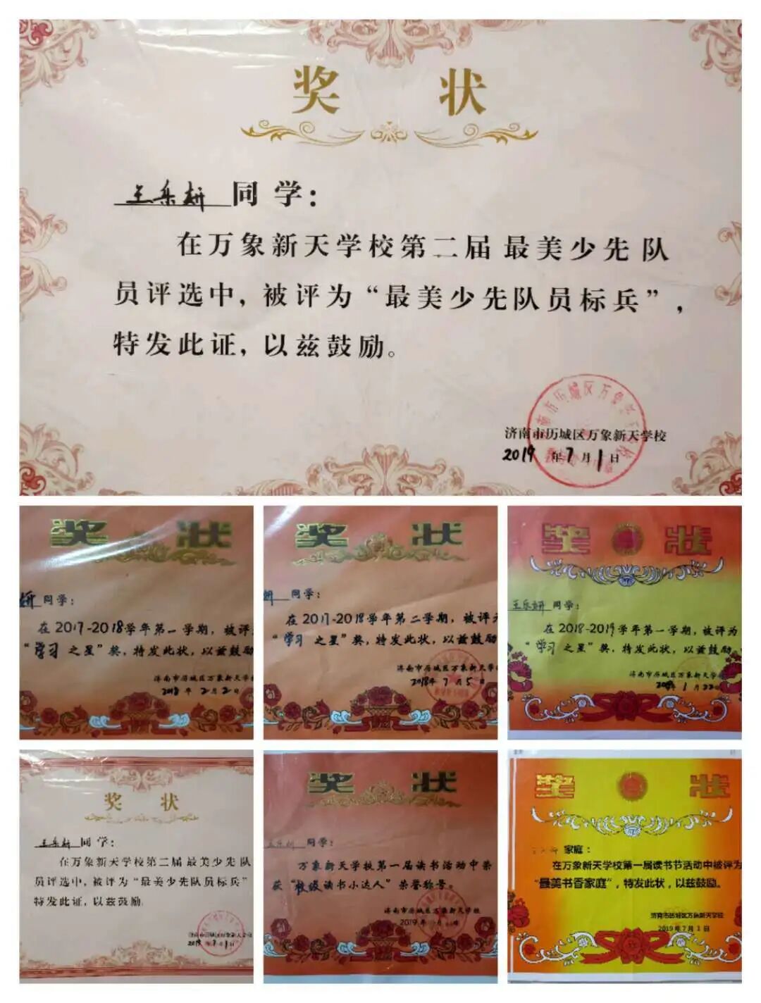 大家好!我叫王乐妍,来自济南市历城区万象新天学校三(5)中队,今年10岁了。我的爱好很广泛,朗诵、绘画、书法、跳舞、读书等。我是个活泼开朗自信的阳光女孩,在家里我是爸爸妈妈的贴心小棉袄,在学校也是辅导员老师的得力助手。