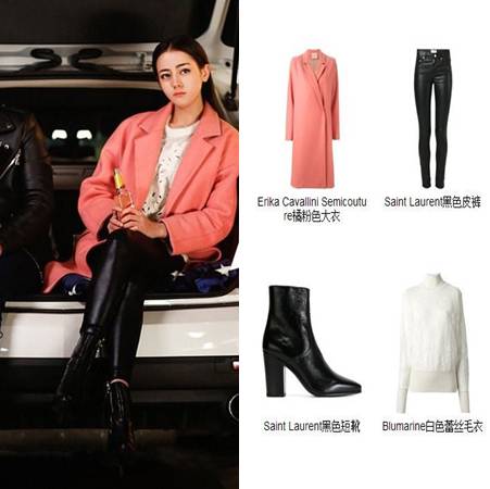 白色蕾丝毛衣+黑色皮裤,性感有了!那就再搭配一个Erika cavallini semicouture 橘粉色大衣!色彩瞬间就有了!