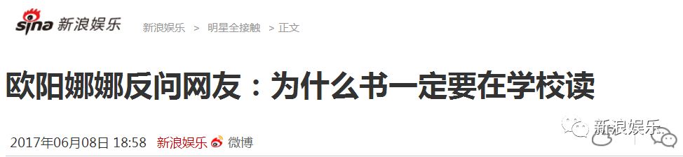 面对网友的评论,欧阳娜娜曾经反问过网友为什么书一定要在学校读。
