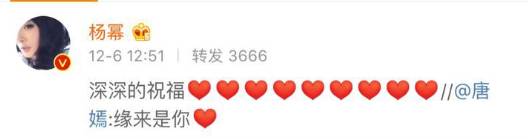 今天(6日)零点,杨就献上了生日祝福:“亲爱的可爱的糖@唐嫣生日快乐,希望你早日找到那个对你好,独一无二的他,其他的话,我们悄悄说。”