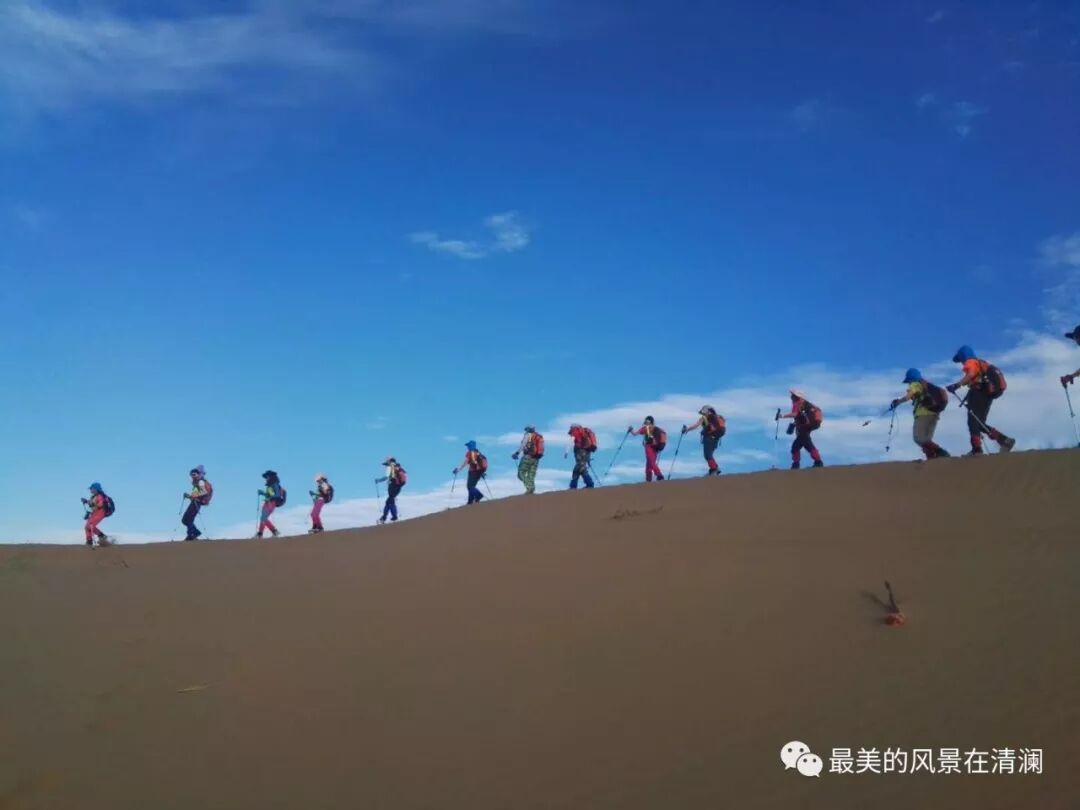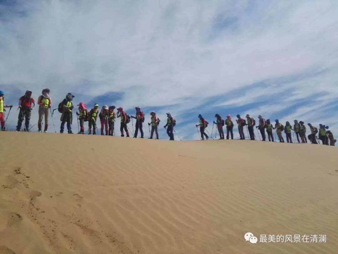 此次行走最艰难的莫过于烈日下冒着50度的高温在沙漠中跋涉了三天两夜,行走了48公里。就这样用自己的脚步,一步一步丈量着这漫漫黄沙,前不见头,后不见尾,那时候,真的有一种感觉,这三天两夜就是自己的一生,行走就是自己生命的常态,艰难困苦也是自己生命的一种常态。但是你想想,沙漠就有这么长,三天的时间就有这么短,如果你唉声叹气,那么时光就在你唉声叹气中溜走了。如果你好好珍惜,你就会格外用心,珍惜脚下的每一步,这时候艰苦就不再是艰苦,难捱就不再是难捱,而成了一种享受!沙漠徒步,走一步少一步啊!就这样,每一步都成了我前行的幸福。
