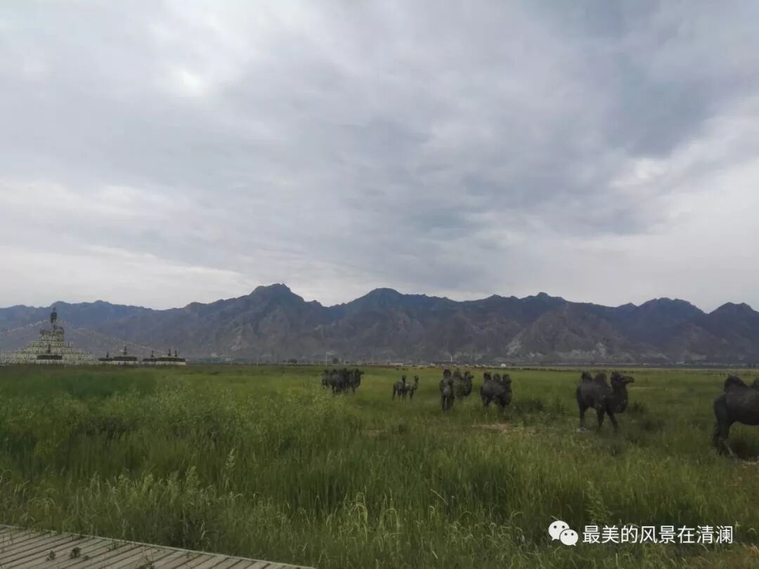 敕勒川,就这么大大方方地呈现在我的眼前,没有丝毫的忸怩,就像内蒙的姑娘,美得那样自然,美得那样洒脱,美得那样张扬。在这里,牛羊就那么自由地散步,它们才是这片草原真正的主人。草原的毡帐就零星地点缀其间,仿佛开了一朵朵白色的大花。草原上最多的是野花,开得那么恣肆,它们不为别人的欣赏而开,只为自己的喜欢而开,它们只听从自己内心的召唤,它们只顺从自己的本性,就是那么率性,我们人啊,有时候被那么多的俗事俗务扭曲了心灵,真应该好好看看草原的草,草原的花,草原的牛羊,好好听听草原的风吟。
