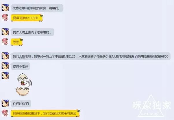 感受:我们是卖摩托车的,遇到的奇葩数不胜数。我有个文件夹是专门收集和奇葩买家的聊天记录的。这个一直排第一,至今无人能超越。