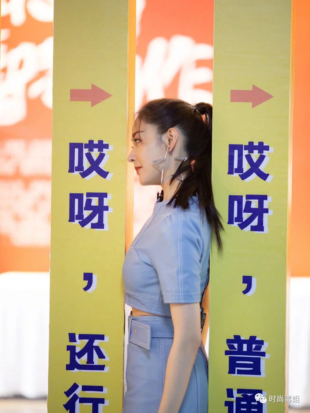 张天爱这一套造型和上头的一套造型在样式上头有非常大的差异,高高的马尾清爽又减龄,少女气味爆棚!计划浮夸的星星耳饰看上去高档感实足,霸气实足!这一件蓝色的连衣裙看上去是非常中规中矩的计划,但是上衣露脐的计划或是露出了张天爱的好身段。
