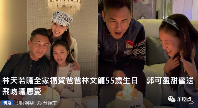 12月21日,据港媒报道,郭可盈携女儿为老公林文龙庆生,女儿事后在个人社交账号上晒出一系列照片和视频,郭可盈则留言送飞吻。