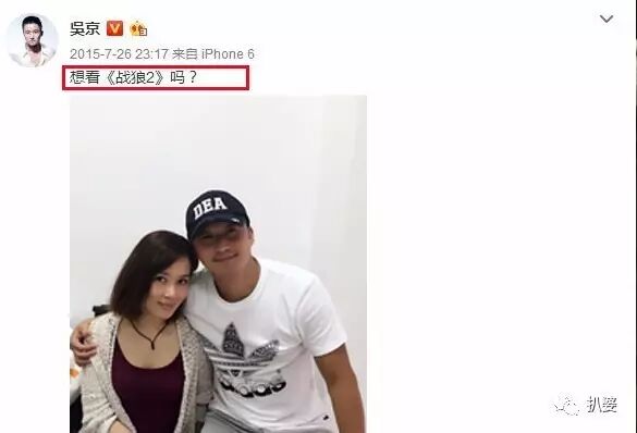 战狼1票房口碑双爆后,吴京在微博发了自己和余男的合影,提前撩粉丝,问大家想不想看战狼2。