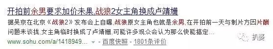 但开拍前一天,该女演员的经纪人跟《战狼2》的制片人说要加钱,说:“你们《战狼2》有钱了呀。”