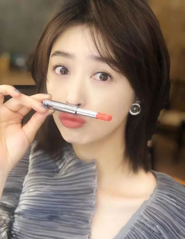 她还搞怪地把一支唇膏夹在自己的嘴唇和鼻子中间,杏眼圆溜溜的,这样的娘娘好俏皮,元气橘的唇膏好显白,看得秧秧都想跟风买!