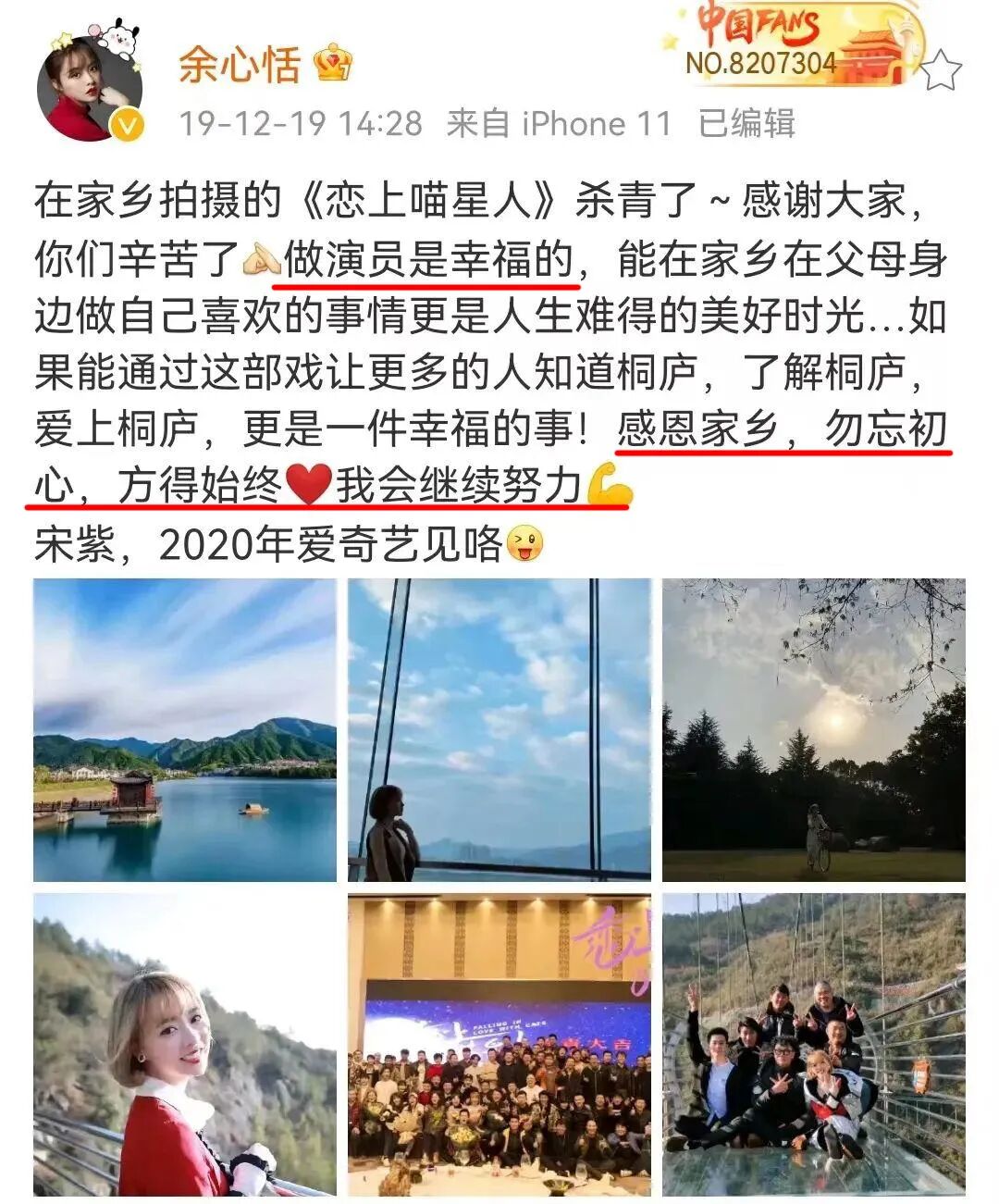 《恋上喵星人》的取景拍摄地恰好在余心恬的家乡桐庐,作为演员,辗转于各个剧组,跑遍祖国的大江南北亦是常事,据了解也是余心恬介绍剧组来家乡取景,努力宣传自己的家乡,勿忘来时路,也看到了她作为演员可贵的感恩之心,就像她所说的很多人以为桐庐只是“小”县城,去了以后才知道是一个非常美丽人杰地灵的地方。