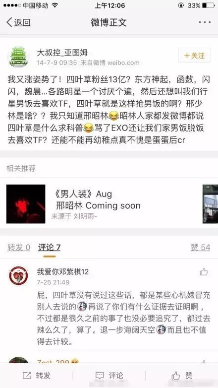 作为一名男粉,倒也不算是啥黑点,但是邢昭林当年却引起了TFboys粉丝跟EXO粉丝撕逼的事。