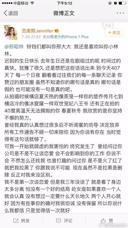 后来六月份两人就不联系了,最后邢昭林更是直接将范美熙拉黑了。