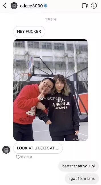 这条评论把陈冠希给气坏了,回复里一顿大写,然后他还觉得不解气,还要找出对方的丑照,在私信里嘲讽一番。