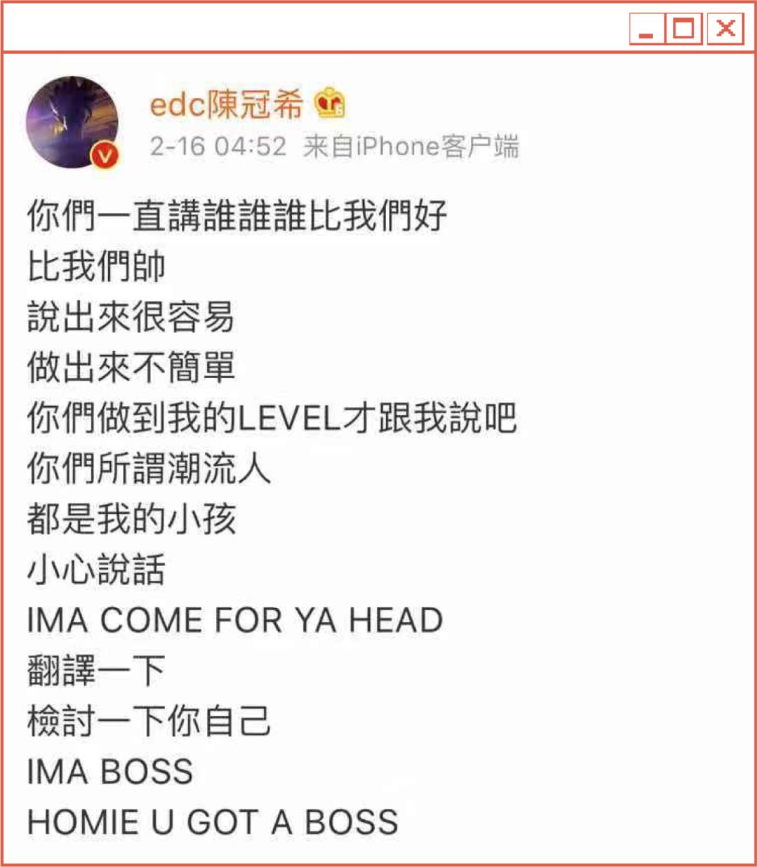 紧接着,陈冠希还在微博上放出狠话,表示自己根本不怕,你们尽管来: