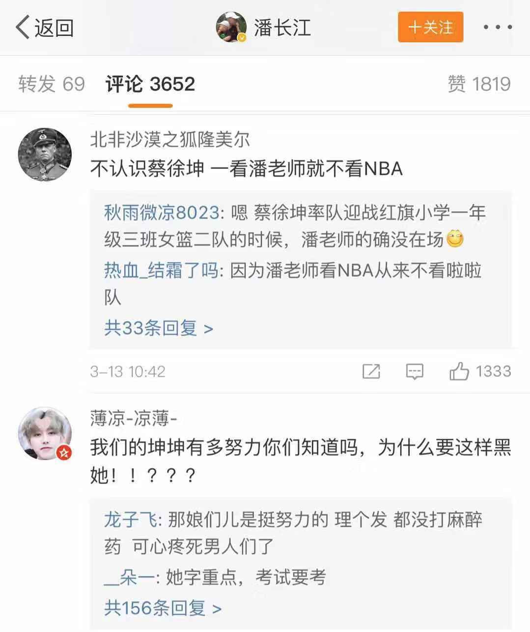 △ 最近,潘长江在节目里说自己不认识蔡徐坤,其实蔡徐坤粉丝没觉得有啥,反而是狗粉丝装作蔡徐坤的粉丝在评论里搞事情