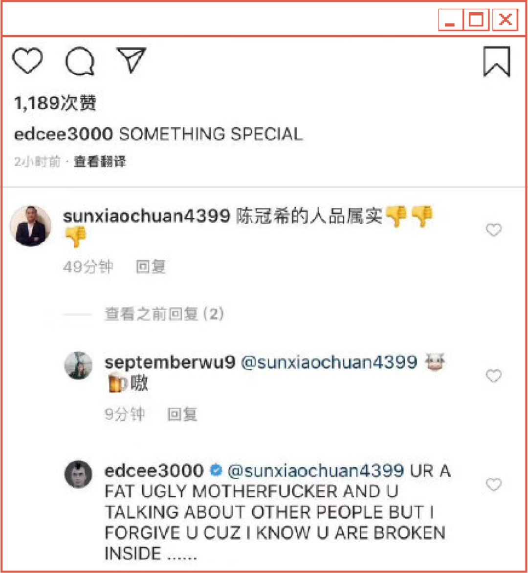以至于,他们已经开始跨国出征,在陈冠希的ins上生根发芽了。