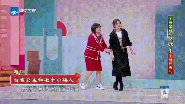 贾玲索性和赵薇交换角色,弯下身演起了七个小矮人,队友关晓彤瞬间猜中,引来一阵爆笑。