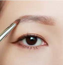 Step3:准备眉粉将眉毛的空隙填充,注意眉头的颜色要浅一点。最后用眉刷将眉毛打造出根根分明的效果,可顺便可以将多余的颜色扫开。
