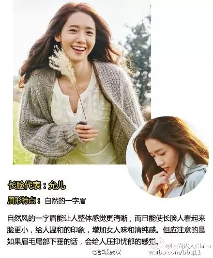 适合一字平眉,宜粗不宜细,这样脸部看起来不会太长。