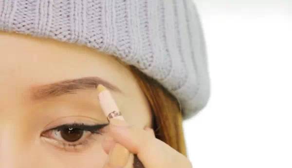 STEP3:蘸取与发色接近的眉粉,从前向后勾勒出眉头的形状,颜色不要太深。