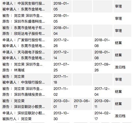除此之外,刘立荣以及其各公司也在2017年1月份陷入了多起诉讼。