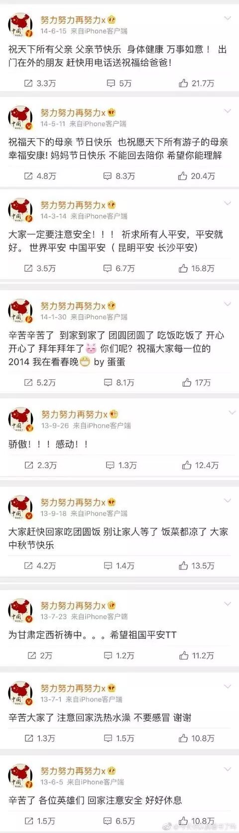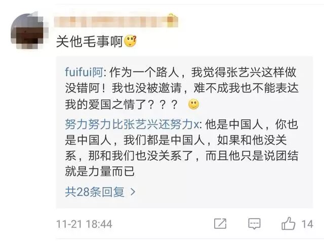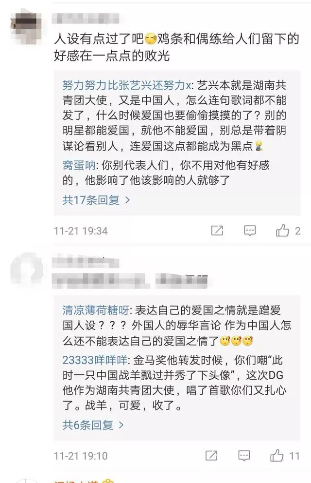 这也并不是艺兴第一次正面回应类似的事件了,远的不谈,11.17号"金马奖事件"wuli艺兴也是跟着共青团的脚步,转发了"中国一点都不能少"的微博。从在韩国出道以来,在任何场合只要提起成员国籍就会声明自己中国人的身份,他爱国也不是一天两天了,只是你了解的晚罢了,蹭人设他根本不需要。
