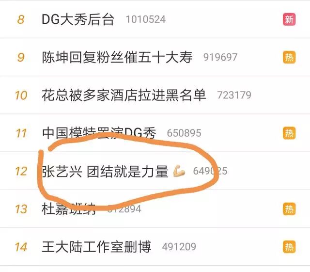今天的微博可谓是热闹非凡,"dg设计师涉嫌辱华"事件相关搜索占据微博数条热搜,然而就在写热搜中我看到一个熟悉的名字"张艺兴"(自己脑补长沙话)带着"#团结就是力量#"这个话题冲在了前面,想都不用想这是为啥发的。