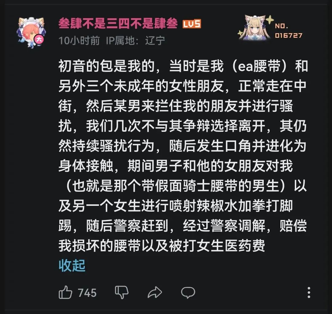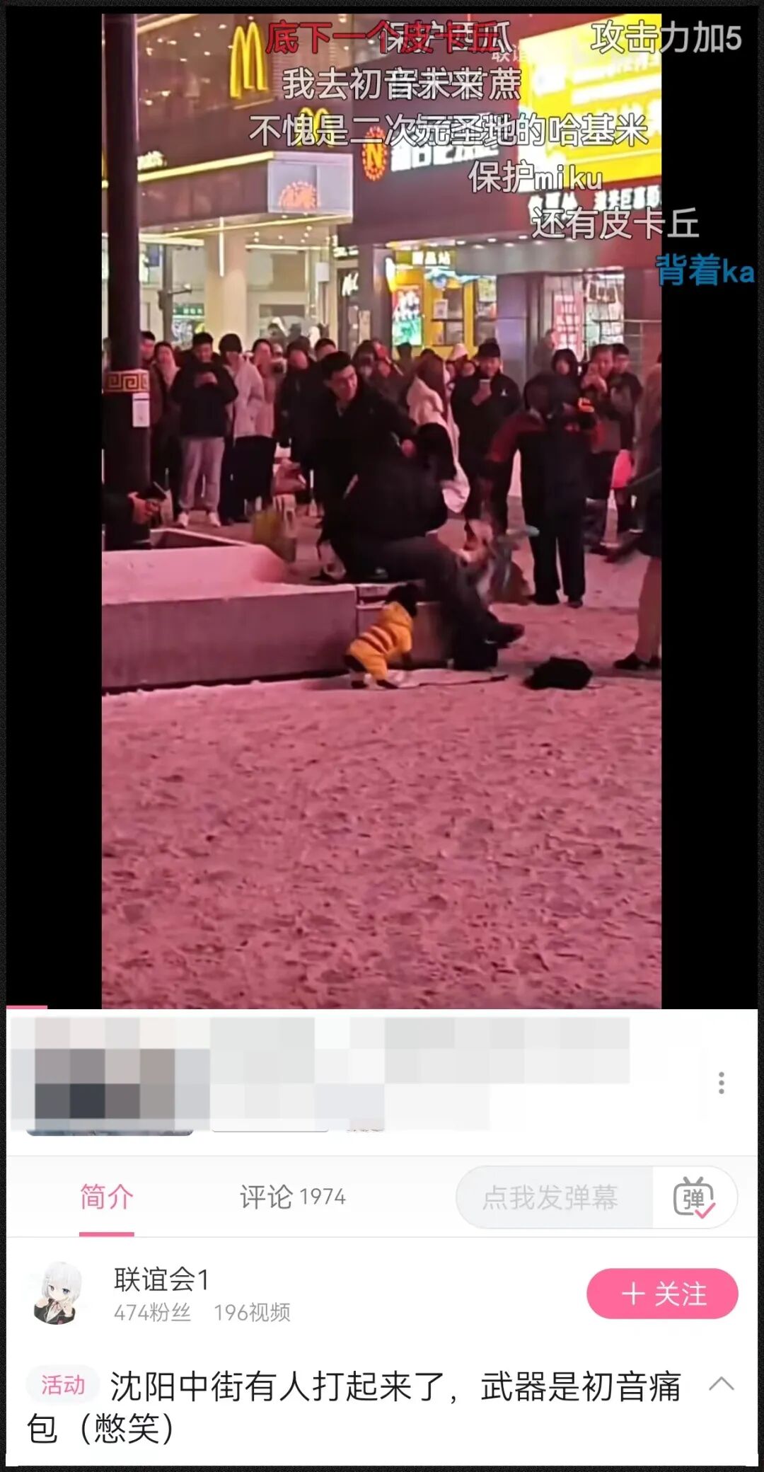 正好前两天看到一个地方新闻,说是沈阳中街(热闹的商业街)有人打起来了,武器是“初音痛包”。