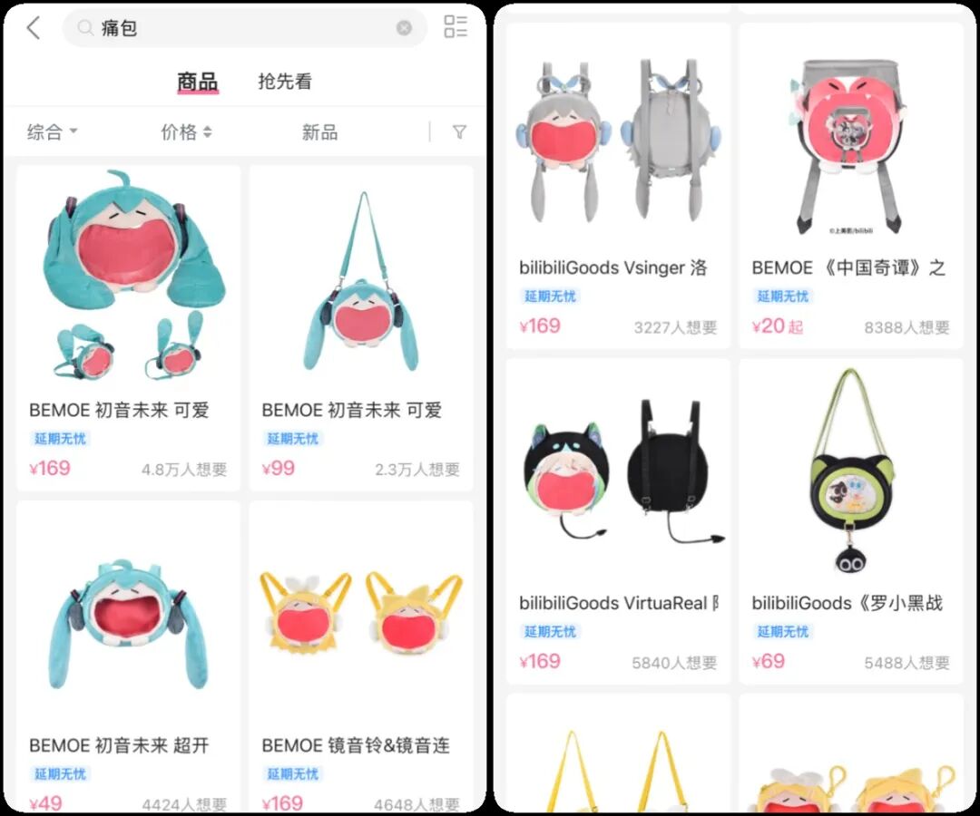 如果说初音未来最具有影响力的周边是fufu玩偶,那么最出圈的周边还得是初音未来痛包。