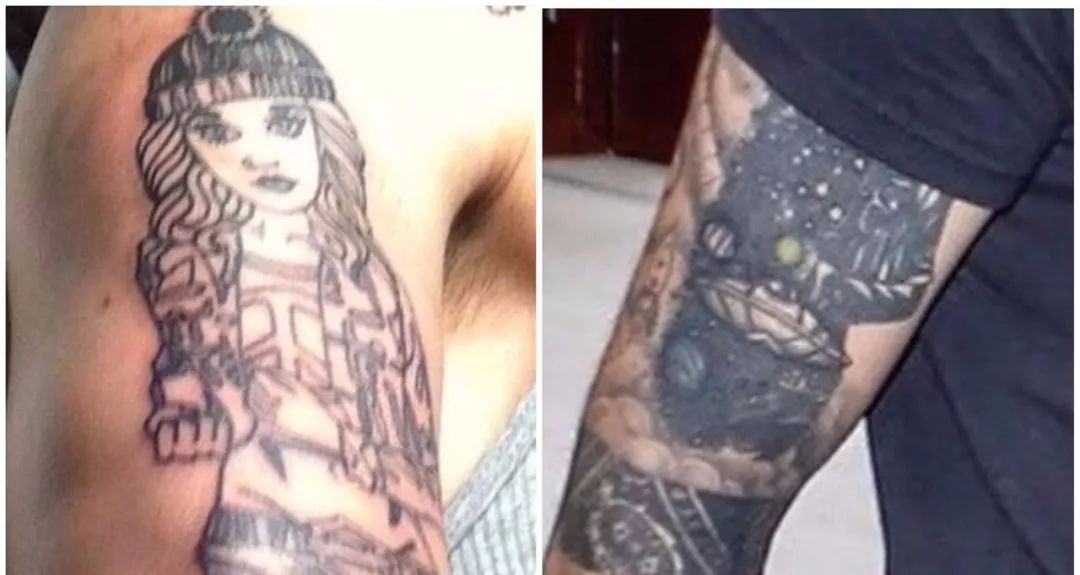 就是你上面看到他手臂上的这个纹身,是美渣的前前女友(准确说应该是前未婚妻?)Perrie Edwards(有兴趣可以去扒一下),但是后来,美渣把它给遮掉了