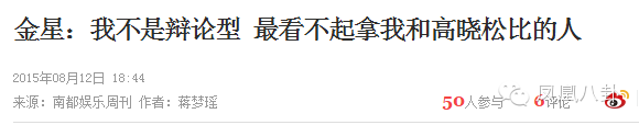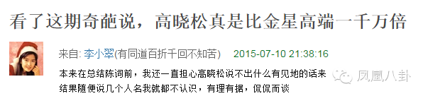 金星本人则说,我不需要去模仿高晓松的风格,而且我最看不起,拿我和高晓松来比的人,不具可比性。