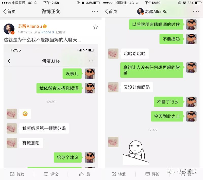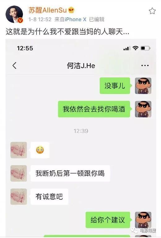 苏醒说“没事儿,我依然回去找你喝酒”,何洁回复“我断奶后第一顿跟你喝”……