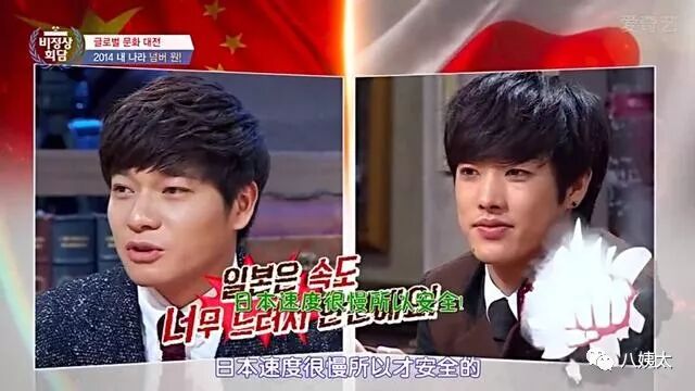 但是很显然对部分韩国人和日本人来讲不是这么回事。在“非首脑会议”谈论到高铁这一期的时候,一位日本人说日本的新干线很快,法国小哥哥说自己国家的TGV(估计也是高铁)很快,然后张玉安马上说中国高铁也很快。