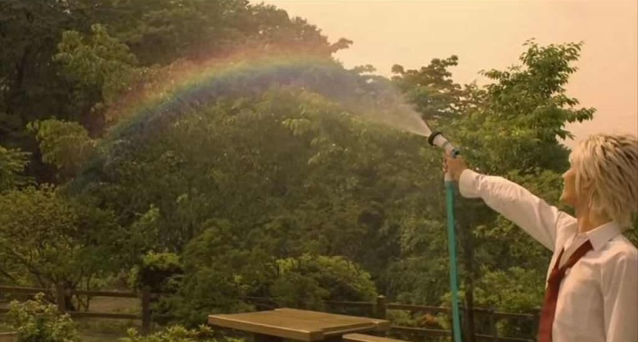 从此以后,看到水管喷出的彩虹,都是弘树的样子。