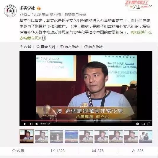 文章列举了大量网络资料,贴出戴立忍在台湾太阳花“反服贸”运动、“反课纲”运动等活动中的言行,说明其是台独艺人: