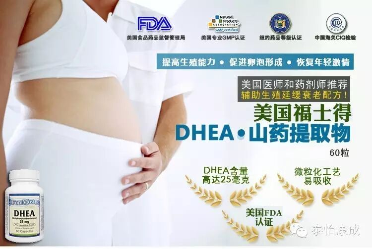DHEA在体内的水平随着年龄的增长,会逐渐下降,DHEA的分泌量在15~25岁时达到高峰,30岁之后平稳的下降,每十年大约下降10%。DHEA的减少会促使人体加速老化、性能力、脑力体力都会持续下降。伊能静在博文中强调DHEA对高龄产妇的重要性,DHEA可以有效保护女性卵巢,促进卵泡的形成;从而提高自然妊娠成功率,增强生育能力。