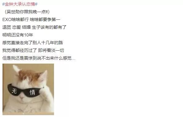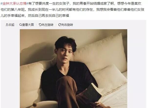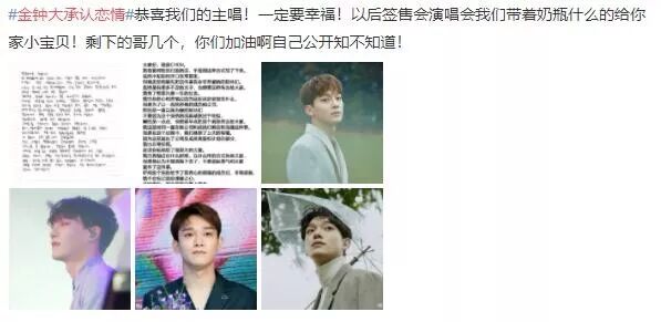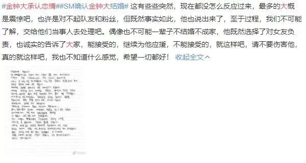 13日,金钟大在EXO官咖发表手写信承认恋情。