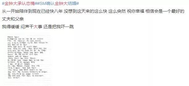 金钟大承认恋情后,SM发表官方立场,确认金钟大结婚消息。