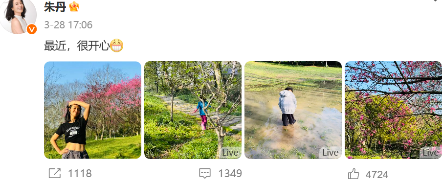 如今的朱丹,事业爱情两美满,只要有时间就一家人出游享受亲子时光,真的很令人羡慕,前两天她还在社交平台晒出带孩子踏春的照片呢,希望她们一直幸福下去!