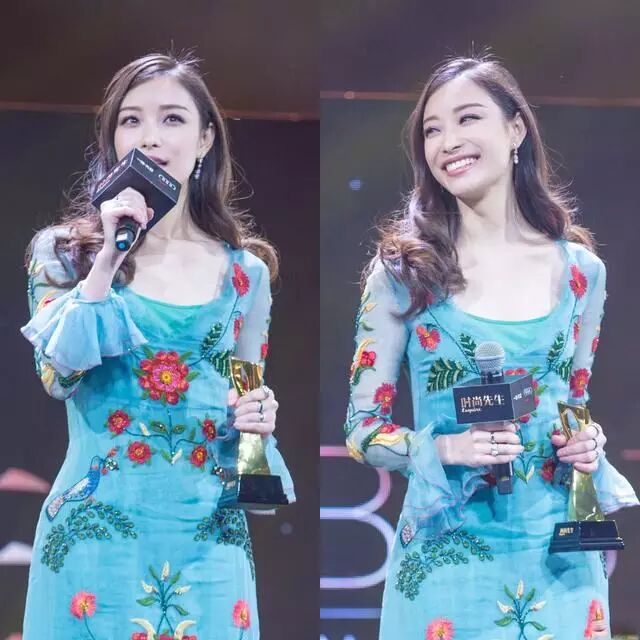 最后就是这条撞遍天下无敌手的粉蓝色刺绣低胸连衣裙,之前也跟姑娘们一起比较过高圆圆、白百何、孙俪和倪妮的各种花仙子look,而这次这个撞衫大队伍又多了一个林允。