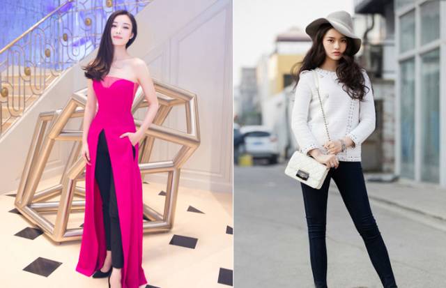 同款紫色短外套,还意外的都搭配了黑色小脚裤,凸显筷子腿,长发披散下来,优雅范儿四起,不得不说这两张照片看着两人像得真心不是一点点呀!