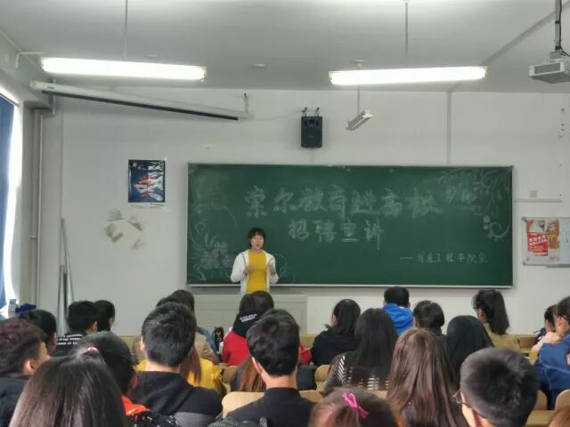 2017年9月27日下午两点在主楼B601室举办索尔教育进高校宣讲活动,参加此次活动的有信息工程学院党总支副书记王子鸣老师,索尔教育魏校长,2016级数学与应用数学专业的全体学生。