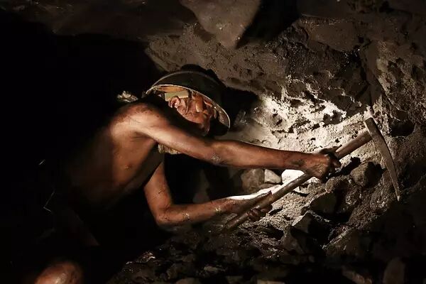 工作环境极其惨烈。吃得极少,日夜工作,只能穿一条内裤下矿。