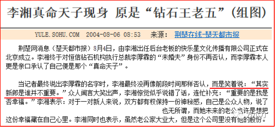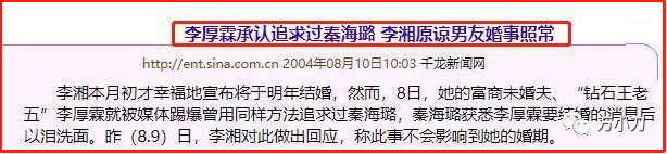 李湘“壕横史” 万小刀 内地女星 2021-02-27 12:27:17 1036 创作不易,用心坚持,欢迎请BaGua喝几杯爱心咖啡!打赏并支持本文 打赏并删除本文 点击关注[万小刀]→点击右上角[…]→点选[设为星标★]一、1976年,李湘出生不久,就被送至乡下姑妈家,等她上学回到长沙城时,父母发现她说话噼里啪啦,吵架非常在行。“嘴仗”打久了,李湘立志要把“特长”发扬光大,目标明确地要当一名主持人。高考时,她放弃保送天津大学,以文化课第一的成绩考入北京广播学院(现中国传媒大学),春风得意,踌躇满志,继续维持“好学生”的身份。窈窕淑女君子好逑,大学几年,不穿插一段校园爱情,似乎不太合理。这位叫关卫民的男生,是李湘公开的初恋男友。两人同校同届不同班,在一次大课中斗嘴,成了欢喜冤家,电光火石间,产生化学反应,“嘴动”变“心动”。1995年,湖南电视台拉开首轮改革序幕时,21岁的何炅进入央视《大风车》栏目,而念大二的李湘,则成为北京电视台《四通八达》和中央电视台《与你同行》的实习主持。那时她一个月的实习工资是1000元,对于当年的学生而言是笔大收入,但李湘的心思不在钱上,她的目标是要实习转正,尽早成名。她决心很坚定,才艺也很卓然,所以信心和傲气也是满满的。唱反调的是她远在湖南长沙的双亲。李湘的父母认为,王城如海,人才济济,劝她宁做鸡头,别做凤尾……问题是,李湘的父母又怎能保证女儿回湖南能成为“鸡头”呢?来,看看李湘的出身。二、李湘曾在节目中透露,她从小生活在部队大院,父母都有红色背景。网上还有传言,说她父亲曾在湖南省司法部门担任要职,母亲经营多家店面,实力相当不俗……不管传言是真是假吧,总之,李湘条件不错,自身又毕业于京城名校,要颜值有颜值,要学历有学历,所以她根本不稀罕那时老播一些猪饲料广告的湖南台,压根儿不想回去……为此,湖南台的某位副台长不惜亲自游说,大意是:“我们正在改革,要焕发电视湘军的创新活力,缺得就是你这样有朝气有活力的新生代主持人,你来,大门敞开,岗位任挑……”20岁的李湘被说动了,1996年,她盘起长发,成为湖南电视台《晚间新闻》的出镜主持。那时她春风满面,意气风发,然而不久就遭到了暴击。当一档严肃的传统节目,出现一张稚嫩活泼的面孔时,连李湘的妈妈都以为女儿是在播报“假新闻”。一个星期后,台长坐不住了。他话说得很委婉,让李湘尝试下综艺节目,去《灯火阑珊》发挥所长。那时内地综艺的主流派,是周涛那种字正腔圆、正襟危坐的《综艺大观》。但观众已经出现审美疲劳,2年后,《综艺大观》也进行栏目改版。而湖南台的改革,来得要更早、更猛一些。三、1996年,拉开湖南广电系统第一轮改革序幕的湖南经视,策划了第一档综艺节目《幸运3721》,很快火爆全城,拿下收视冠军。这一来,激起了隔壁兄弟单位湖南台的激情和干劲,于是参考一番,再借鉴一番,就有了《快乐大本营》的雏形。当万事备妥,开播在即时,主持人却还没有着落。近火还得近水救,正在主播《灯火阑珊》的李湘被调去救火,和她结伴而行的男主持,是《晚间新闻》的李兵。1997年7月的一个周五晚上,已经上星升级为“湖南卫视”的湖南台,正式推出了《快乐大本营》。那时的两位主持人,还没感受到时代的浪潮正在奔涌。李兵主持了第一期,就离开了。接棒的是帅气的电台播音员海波,他与李湘男帅女靓,金童玉女的组合,颇受欢迎。然而,短短8个月后,海波自认不适合综艺节目的风格,也主动请辞了。1998年,大学毕业的何炅离开央视,回到家乡长沙,加盟湖南卫视《快乐大本营》。与他的青涩相比,小2岁的李湘显得老练多了,她在节目中穿针引线,驾驭全场。两人第一次合作,没有预演缓冲。直播前,李湘对忐忑不安的何炅说:“现场直播没有什么可怕的,你就跟着我,任意发挥……”这之后,何炅视李湘为主持生涯中最重要的女人。他细心地在兜里备好纸巾、口香糖,会在不经意间塞给有需要的李湘。两人主持越来越默契,绯闻也是满城风雨,实际有没有谈恋爱不重要,关键是,观众都认定两人是在谈恋爱……但观众们喜闻乐见的,还不止于恋情的八卦。四、这档新奇有趣的节目,给观众带来无限欢乐。很快,“快乐大本营,天天好心情”的口号,在湖南省内家喻户晓。1999年,《快乐大本营》步入黄金发展期,仿佛春风化雨般,走入了全国千家万户。李湘、何炅、李维嘉的“铁三角”形成。同年,26岁的李厚霖取得北大工商管理学硕士学位后,建立恒信钻石品牌,迅速攻城略地,成功打造珠宝帝国,开始接触女明星。这个时期,曾经跟着李湘来到湖南卫视的初恋男友关卫民,因跟不上她的发展步伐,早已被风雨冲刷下阵。校园恋经不起现实的考验,倒也正常。当名气如潮水般喷涌之时,初恋往往首当其冲,成为历史的牺牲品。据说,关卫民去了广州后,下落不明,李湘的男友换成了一个叫杨胜东的餐饮企业家,两人谈了好几年……这几年间,《快乐大本营》成为内地娱乐节目的风向标,台上稳站C位的李湘,一路火花带闪电,人气登峰造极。在接受采访时,一位记者问李湘:“你觉得国内主持人中,你排第几位?” 李湘自信满满,霸气回应说:“我是中国最好的娱乐女主持……”随后,李湘沿着名气多元变现的步伐,出版个人写真集《快乐如风》,推出单曲《给我新鲜》,并主演电视连续剧《快嘴李翠莲》《中华英豪》