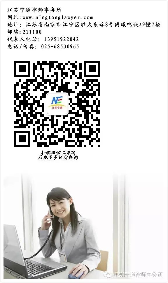 “强化责任观念,修炼气质风度,树立精品意识,提供系统服务”是江苏宁通律师事务所一直推崇和坚持的职业理念。我们将秉承这一宗旨,持续提升自身素质,超越过去,以继续依法维护广大群众的最大合法权益,在法治进程中实现自身价值。