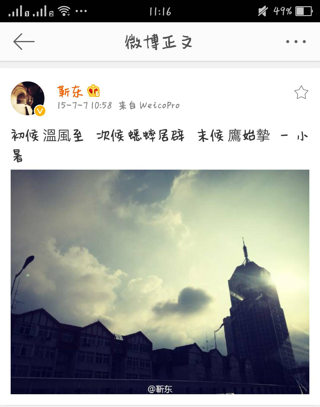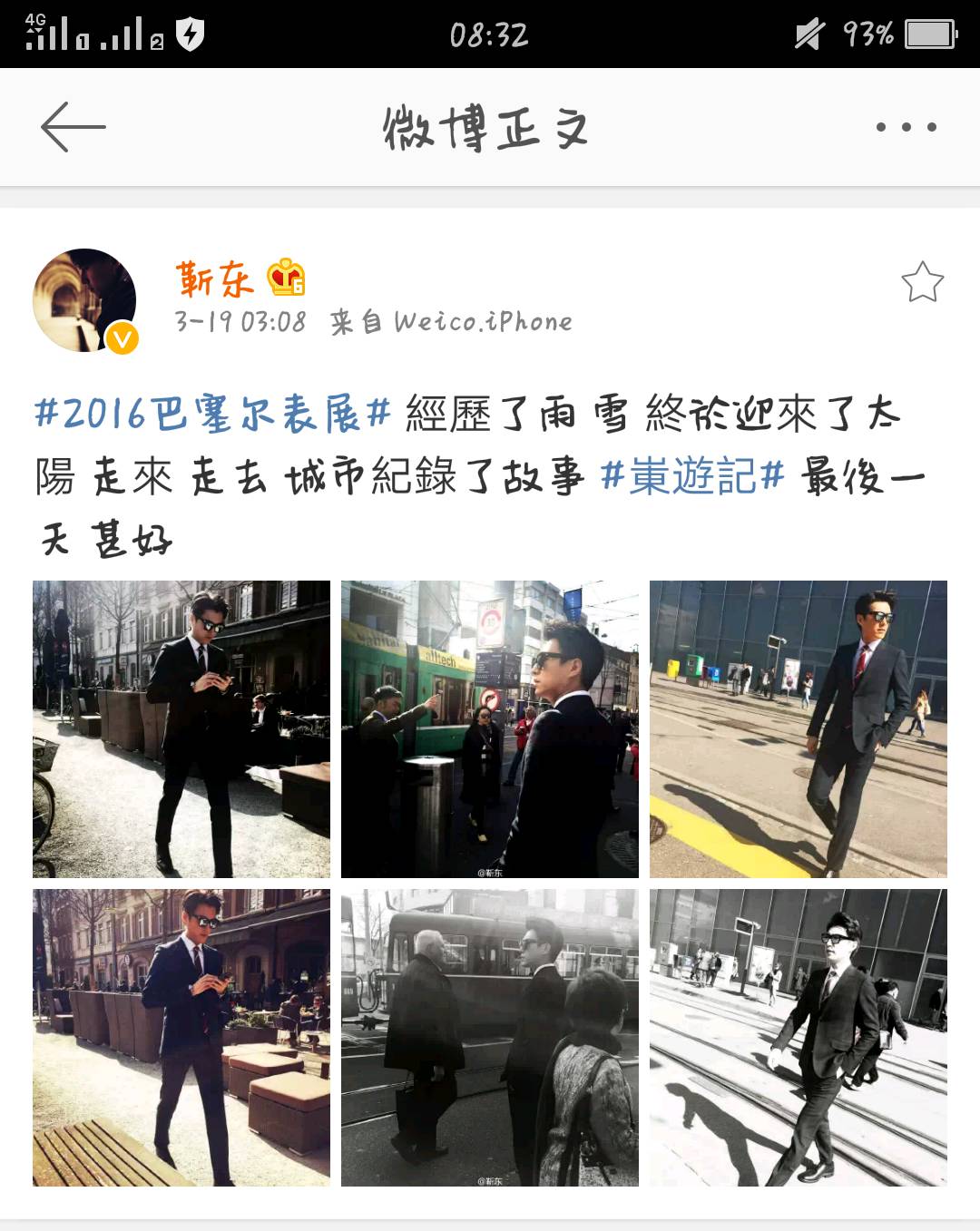 托了飞亚达的福,靳东在巴塞尔钟表展上居然有了日更微博的节奏,虽然还是在关注天气,雨啊雪啊太阳啊什么的。。。
