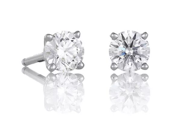 魅力永驻的简约式铂金耳钉。圆形明亮型车工钻石在四爪镶嵌底座中熠熠生辉。我们的店铺提供多种色泽和净度等级。