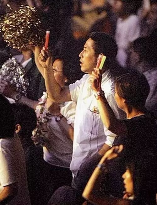 累了就喝一口水,然后继续欢呼……就像是一个普通的小歌迷,在支持他们心中的那一个独一无二的偶像
