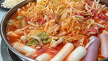 | 将黄瓜、胡萝卜,菌类,西红柿、海带、泡菜、年糕、方便面等食材整齐的放入锅内,再加上特制的浓汤和韩国特色的辣酱一起小火慢炖,等到锅内浓汤煮沸,就可以开动啦!